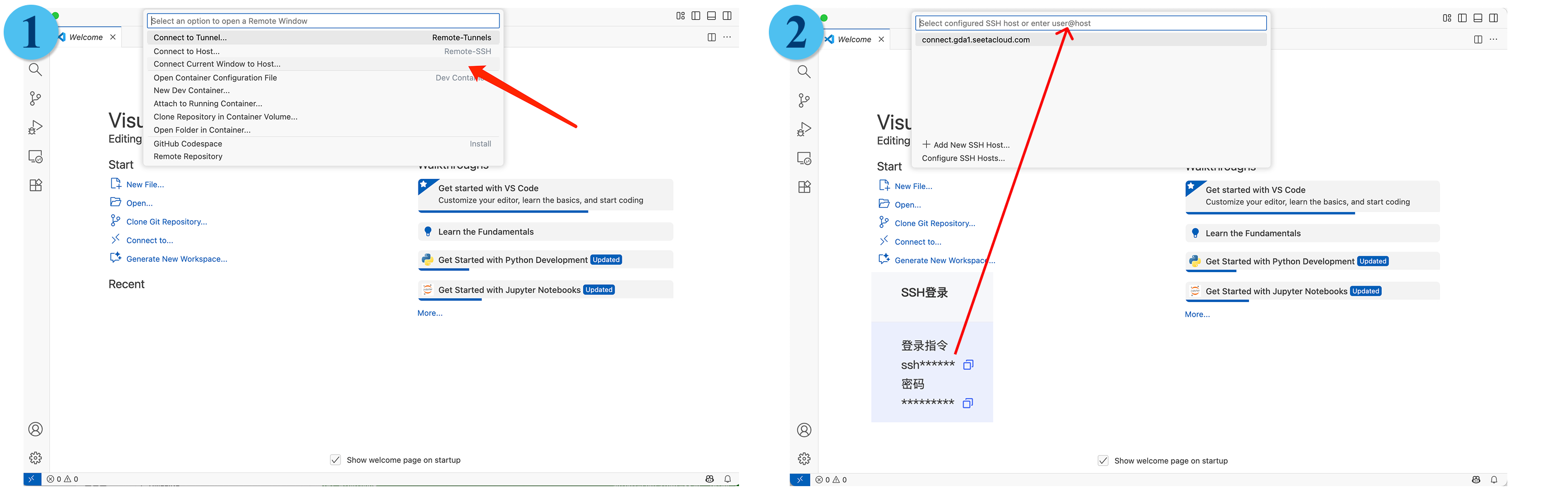 在使用的时候,我们既可以直接用JupyterLab线上各种操作,也可以使用他们的自定义服务,不过我比较习惯用VS Code,所以直接远程调用服务器本地编辑的,这里简单说下怎么用。