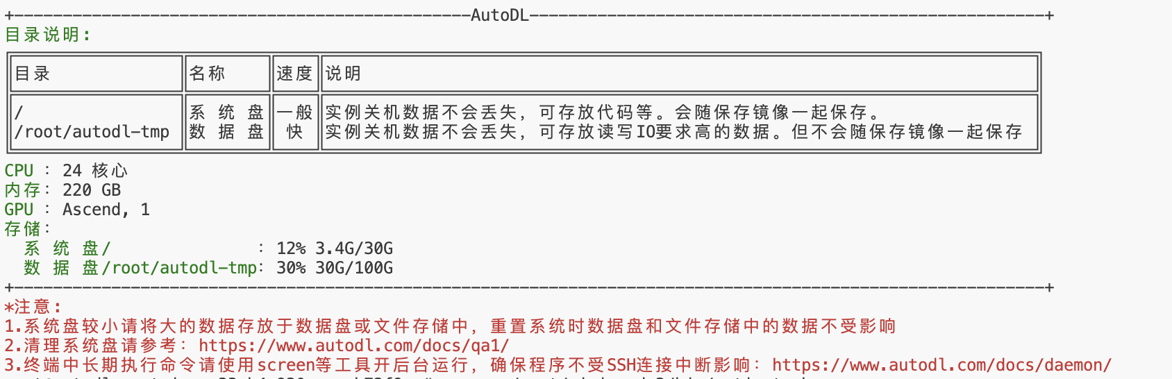 本次教程使用昇腾910B2,也就是NPU来进行训练,在AutoDL上创建NPU的容器进行训练,过程很简单,我们在下面的教程里会一步一步指导。