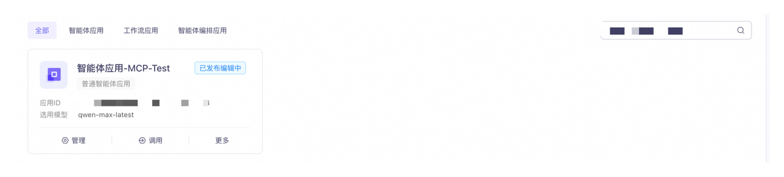 然后我们将开通好的MCP服务嵌入到我们准备的智能体中,在百炼应用管理中找到智能体应用功能,创建一个新的智能体应用: