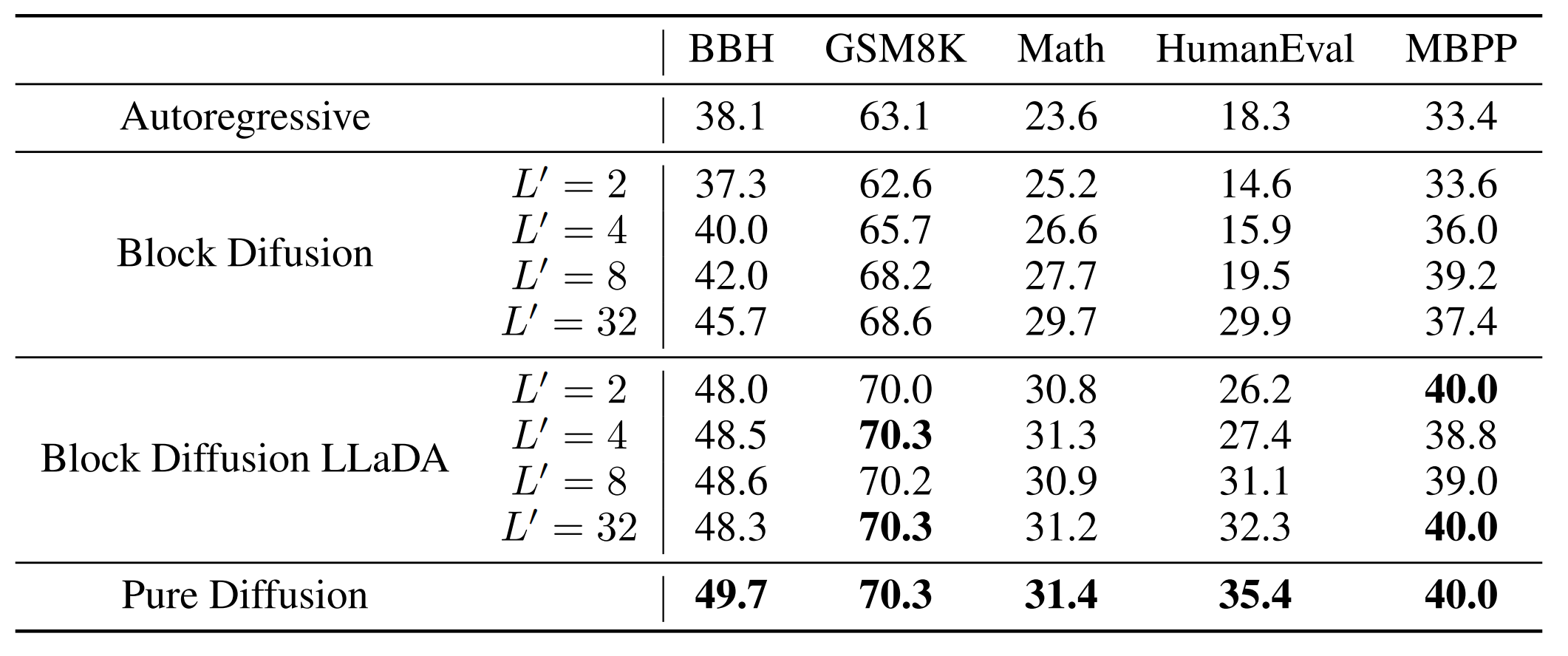 论文验证了在block_size=32的时候,和纯扩散模型效果差不多,因此这样设置: