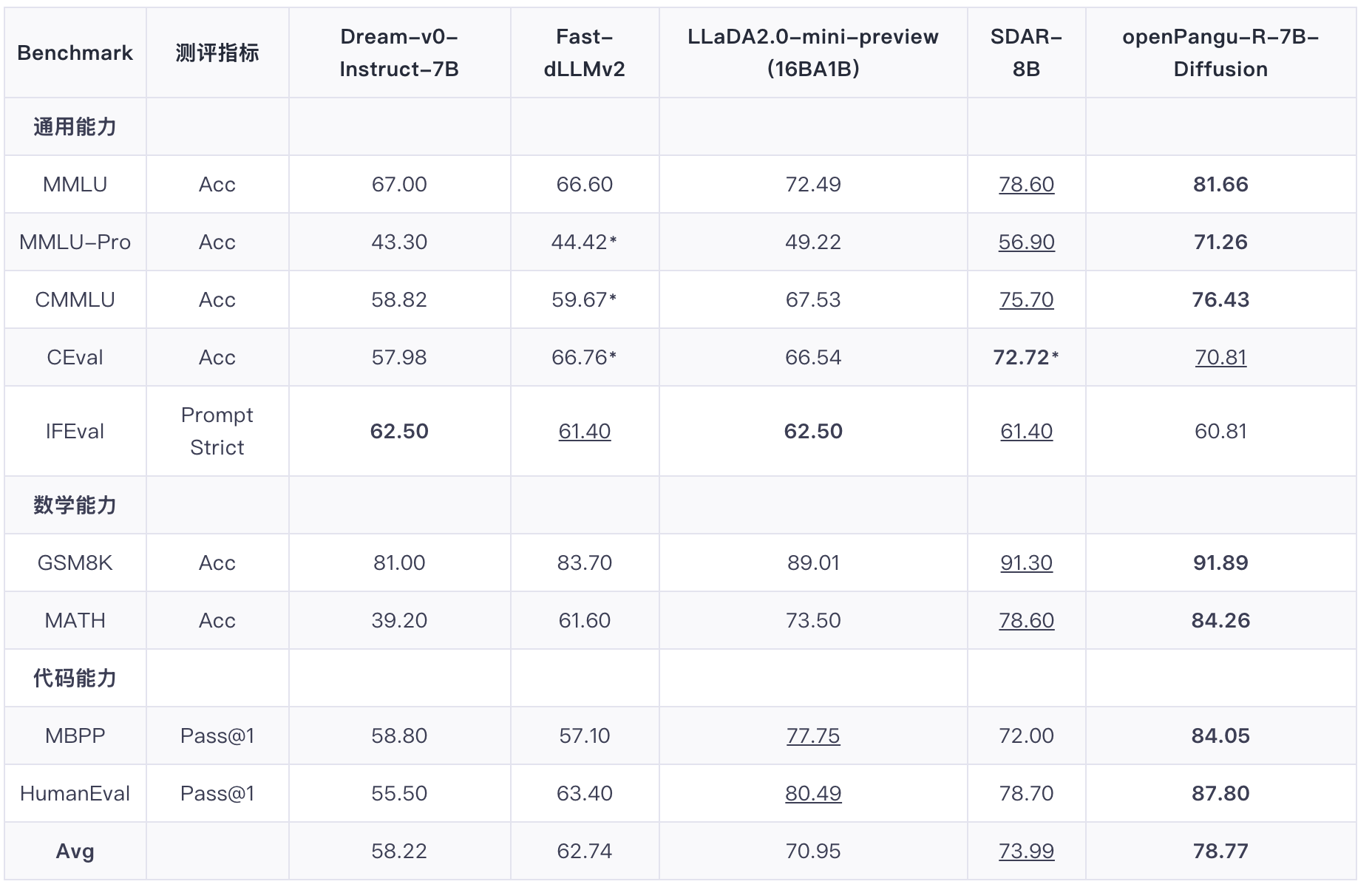华为近日正式发布openPangu-R-7B-Diffusion,基于openPangu-Embedded-7B进行少量数据(800B tokens)续训练,成功将扩散语言模型的上下文长度扩展至 32K。