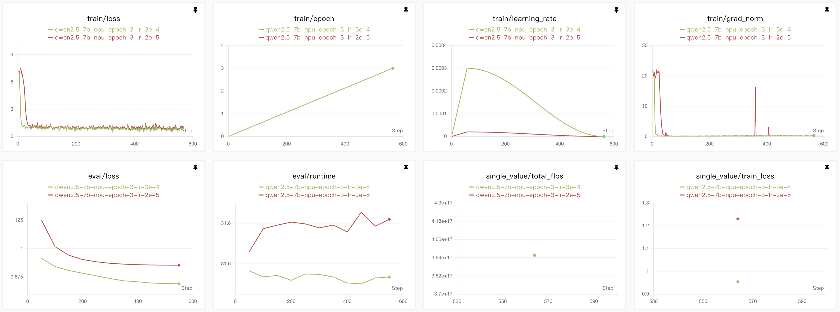 bash scripts/train-qwen-sft-multinpu.sh超参数设置在configs/qwen2.5-7b-alpaca-npu.yaml
