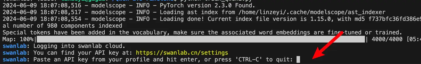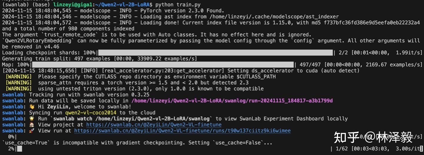 swanlab.finish()看到下面的进度条即代表训练开始: