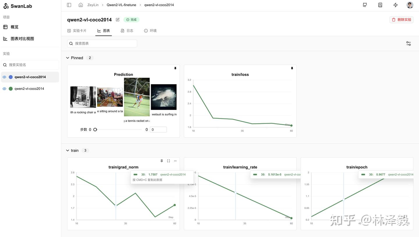 Qwen2-VL是阿里通义实验室推出的多模态大模型。本文我们将简要介绍基于 transformers、peft 等框架,使用 Qwen2-VL-2B-Instruct 模型在COCO2014图像描述 上进行Lora微调训练,同时使用 SwanLab 监控训练过程与评估模型效果。
