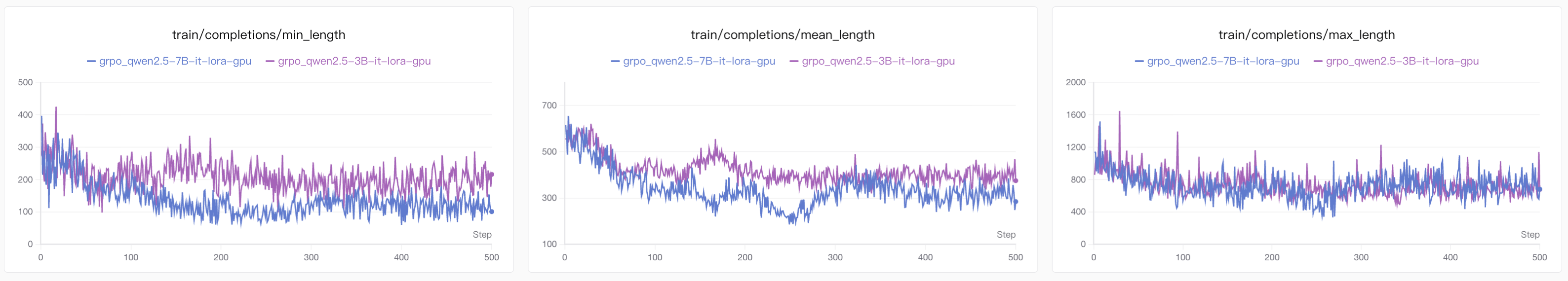 另外,7B模型普遍比3B模型用更少的思考长度得到正确答案