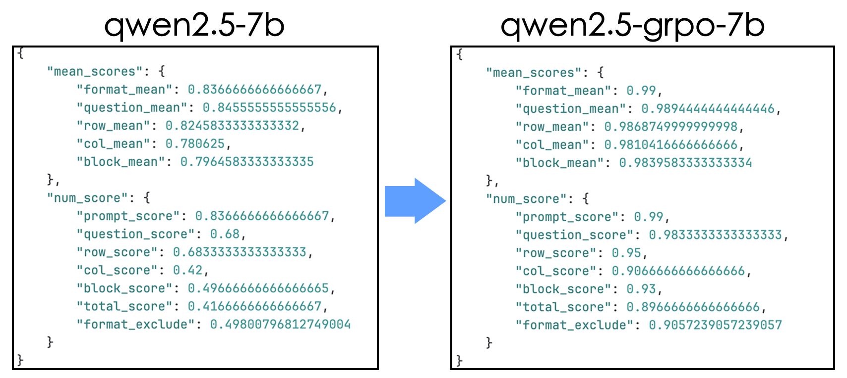 3. 我们在实际实验的时候发现,因为模型是预测后面的文本内容,并不是我们习惯的填写数独同时保留问题,模型是全部输出,因此会遇到模型改题的情况,对于问题的保持也要设置为奖励函数。