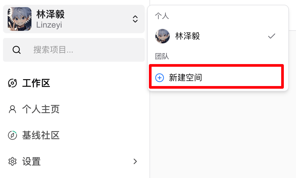 在主页的左上方,点击“创建空间”按钮,填写组织名、组织ID等信息,即可完成组织创建。
