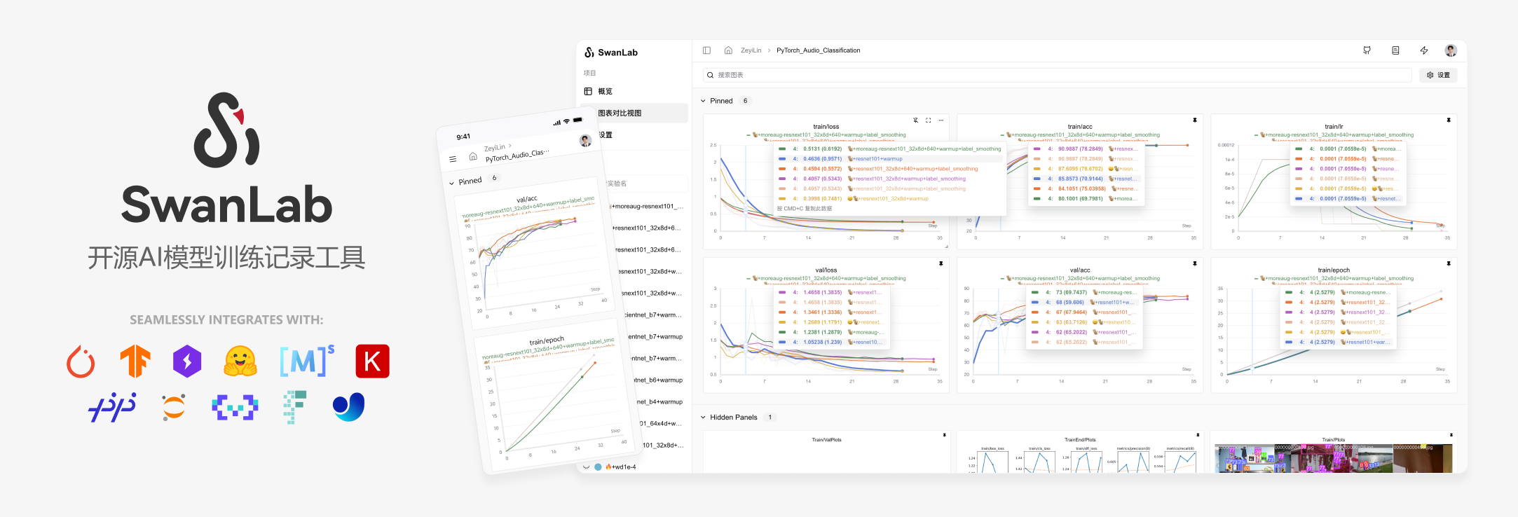 SwanLab 是一款 AI训练分析平台,面向模型训练团队,提供训练可视化、自动日志记录、超参数记录、实验对比、多人协同等功能,帮助团队快速发现训练问题,加速模型迭代。