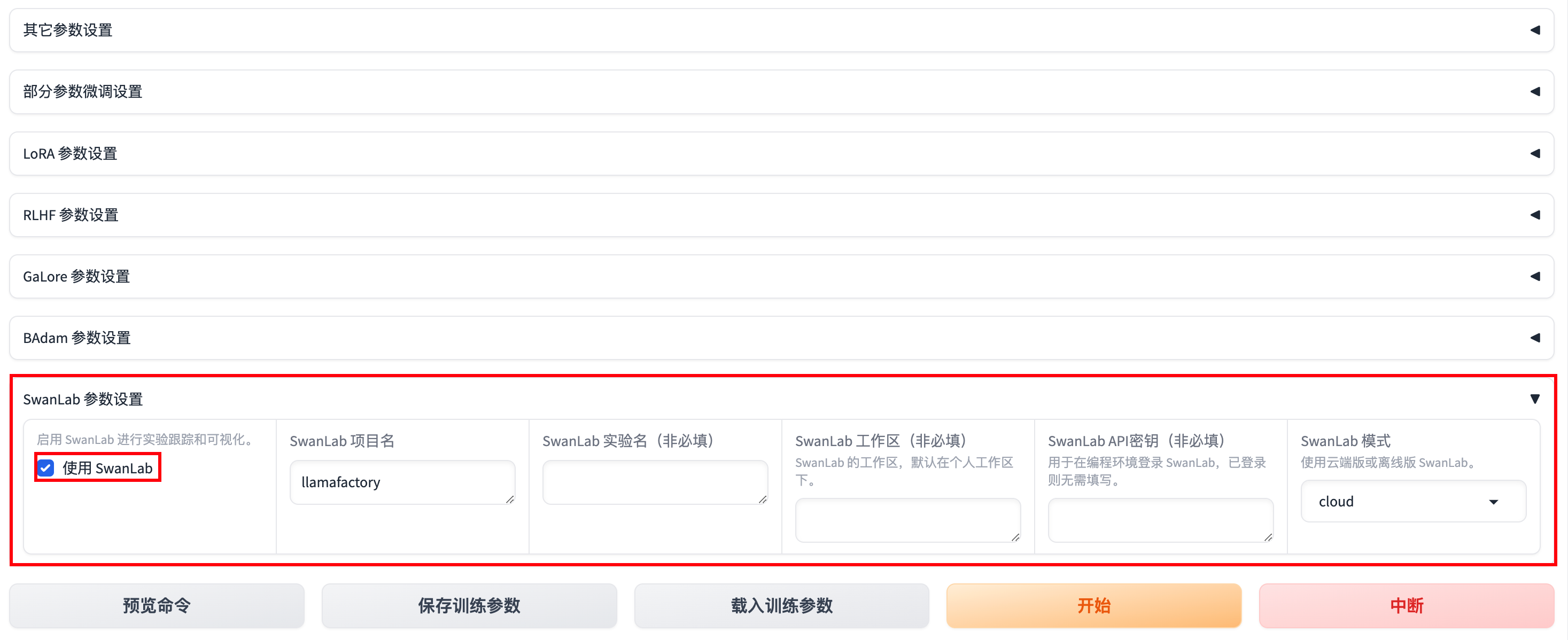 swanlab_api_key: your_api_key更多可见:LLaMA Factory - Github 中的