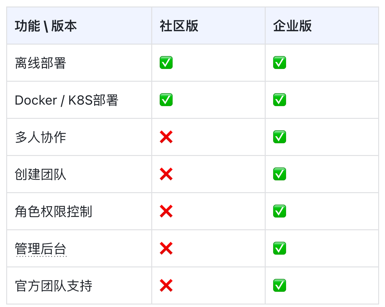 针对专业AI研发团队,我们提供了SwanLab企业版,与社区版的对比可见下表: