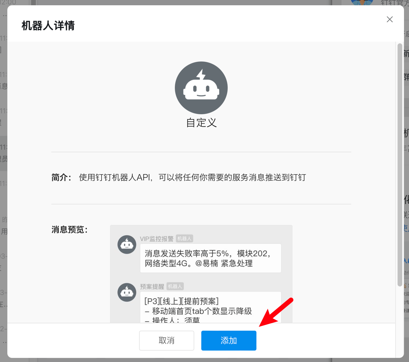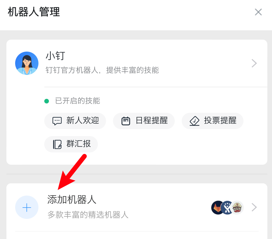 - 点击 「添加机器人」