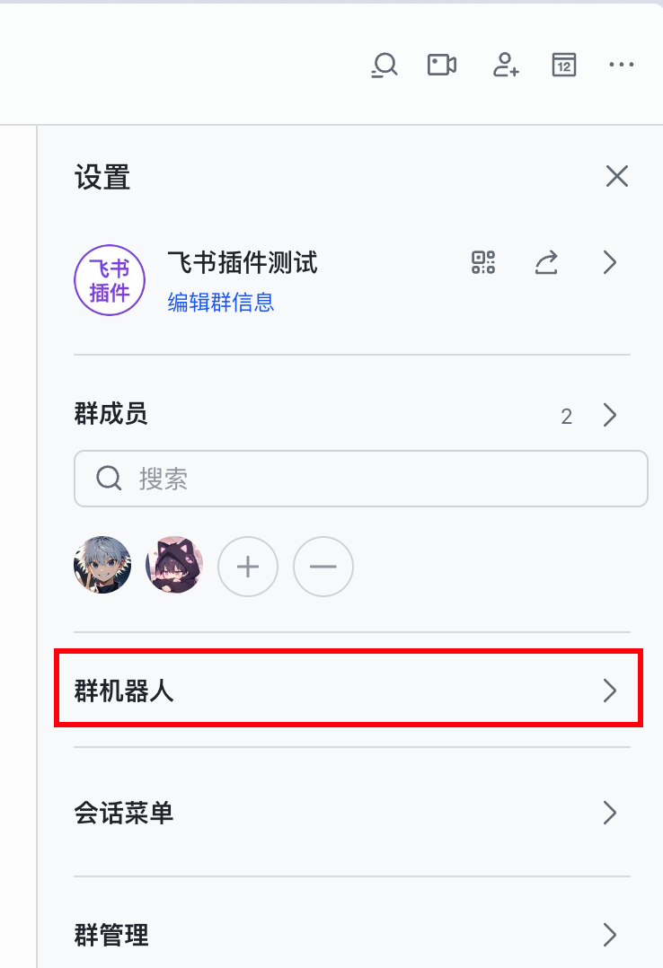 1. 在1个飞书群中,点击右上角的 「···」-「设置」